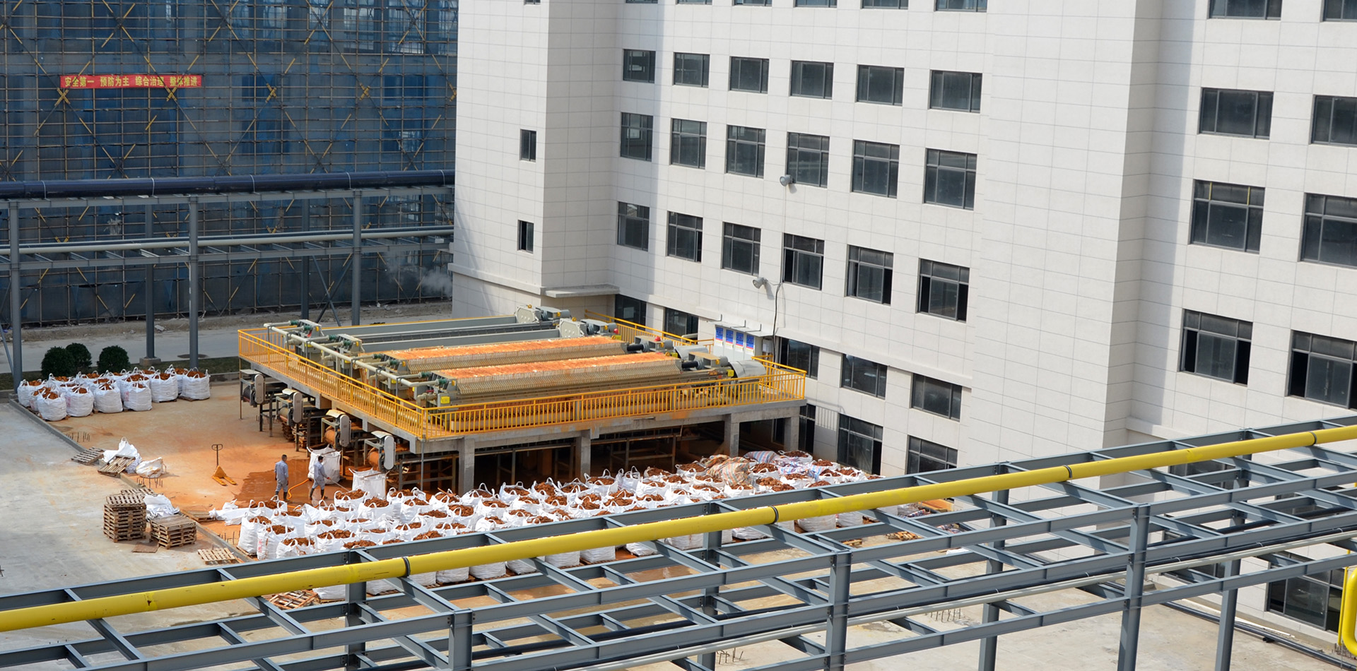 美國(guó)客戶(hù)的高壓隔膜壓濾機(jī)和操作平臺(tái)